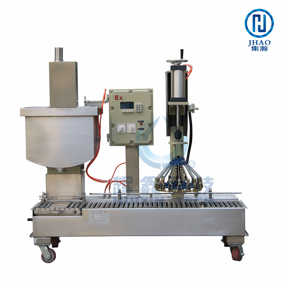DCS30GYFB explosion-proof filling machine is designed according to customer’s requirement and has such features as two filling outlets to be operated by one worker. The barrel position can be adjusted according to worker’s habbit. The filling outlet height is adjustable and fit for round, square, and oblate barrels with various mouth diameters. With roller conveyance, it is easy to move around and the temporary stock tank is easy to clean. Alternative outlets in big and smallsizes can be used for filling different materials. two-speed filling is “fast and accurate” and filling stability is good. It can effectively improve filling speed, reduce wastage, save cost and alleviate worker’s work load.