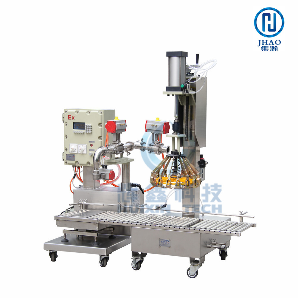 DCS30A&GYFB explosion-proof filling machine: custom-made design and operated by one worker. Putting barrels to any position according to worker’s habbit can finish filling without problem. Roller conveying and adjustable outlet height fit filling round, square and oblate barrels with the mouth in various diameters. Optional filtration unit can make the machine meet multiple demands of filling various liquids. Flexible moving and two-speed “fast & accurate” filling with good performance stability can reduce wastage, save cost and alleviate worker’s operation pressure.